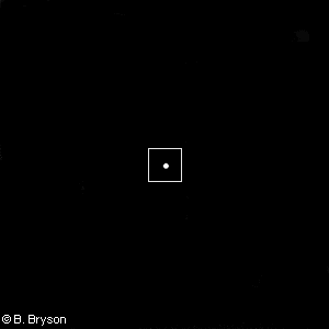 SolThe entire solar system we know as home now lies within the dot representing the Sun. A beam of sunlight requires a bit more than a month to cross this image. We are in the midst of the Oort cloud, the vast sphere of rock and ice from which comets come. The largest of these chunks would be no more than a few kilometers in diameter. If all the matter in the Oort cloud were condensed into a single body, it is thought that it might be about 1/10 to 1/100 as massive as Earth. The Oort cloud is left over from the primordial ball of gas and dust that condensed 4 1/2 thousand million years ago to give birth to the Sun and its family of planets and moons. Copyright © 2005-07 by Bruce Bryson |