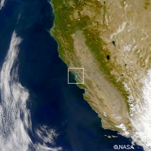 CaliforniaThis region, viewed from an orbit near 2000 km, shows nearly all of California and a portion of Nevada. The length of the western coast of North America is a land of earthquakes and volcanoes resulting from the collision of huge techtonic plates. The Pacific Plate is sliding slowing under the North American Plate, causing intense heating at the plate boundaries as the Pacific Plate is forced into the Earth's mantle. Serious earthquakes have struck Los Angeles and San Francisco in the last 20 years causing substantial damage. Copyright © 2005-07 by Bruce Bryson |
