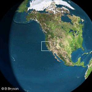 North and Central AmericaUntil now we have been seeing essentially flat images. This is the first picture in which there is any depth. The edges of the Earth are 6400 km behind California in the center of the picture. This is important for the next several jumps because we can talk about a local volume of space. For the next several jumps, I have not included the background stars in the images. Think of each image as a cube of space of a particular size. The image displays only those objects within the immediate volume of space, without any background objects. I hope to convey a sense of the emptiness of our part of the galaxy. Copyright © 2005-07 by Bruce Bryson |